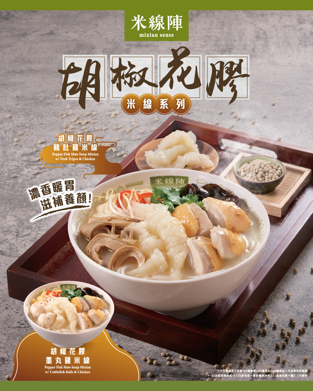 【冬日熱辣登場 🔥胡椒花膠米線系列】 米線陣在秋冬季推出的胡椒湯底每次都有大批支持者,此次加入滋補養...